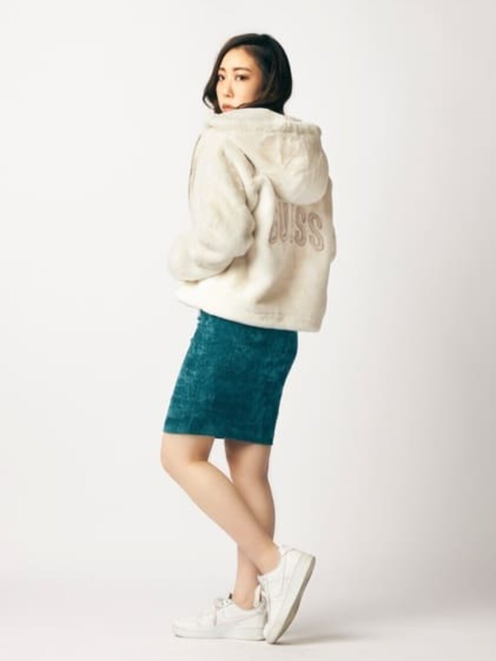 デイリーにも、パーティーシーンにも活躍するベロアのドレスはフード付きアウターと合わせてカジュアルにコーディネートしました。 シューズをヒールに変えるだけで、ドレッシーにコーデチェンジできます。