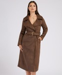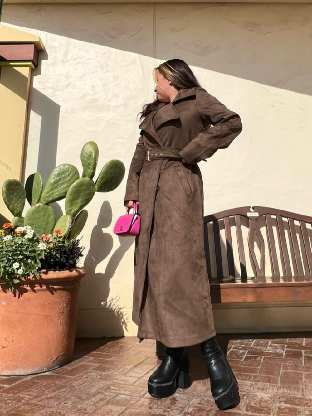 デニムのワンピースにコートをON⭐︎ 胸元がセクシーなドレスをロングコートで上品に仕上げてみました◎ 柄もポイントなワンピースはストレッチ抜群◎ アクセントにビビットピンクのミニバッグをチョイス⭐︎ ディナーデートや女子会、パーティーにオススメコーデ⭐︎