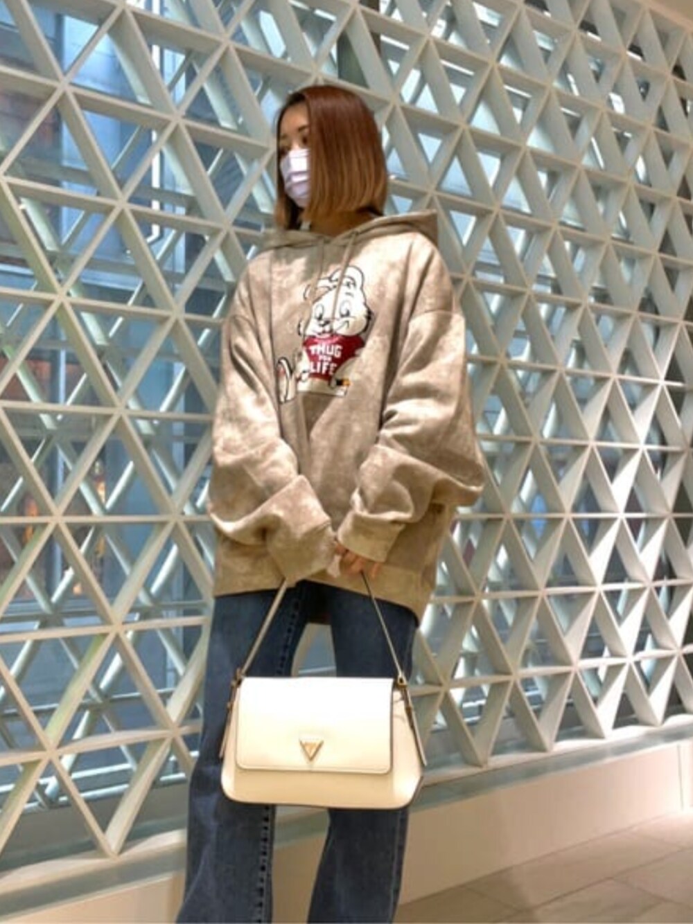 低身長の方でもオーバーサイズで着ることが出来ます! 裏起毛なのでとても暖かく、今の季節に丁度良いです! バッグも少し大きめで長財布が余裕で入るくらいなので使いやすいです! 是非試してみてください!