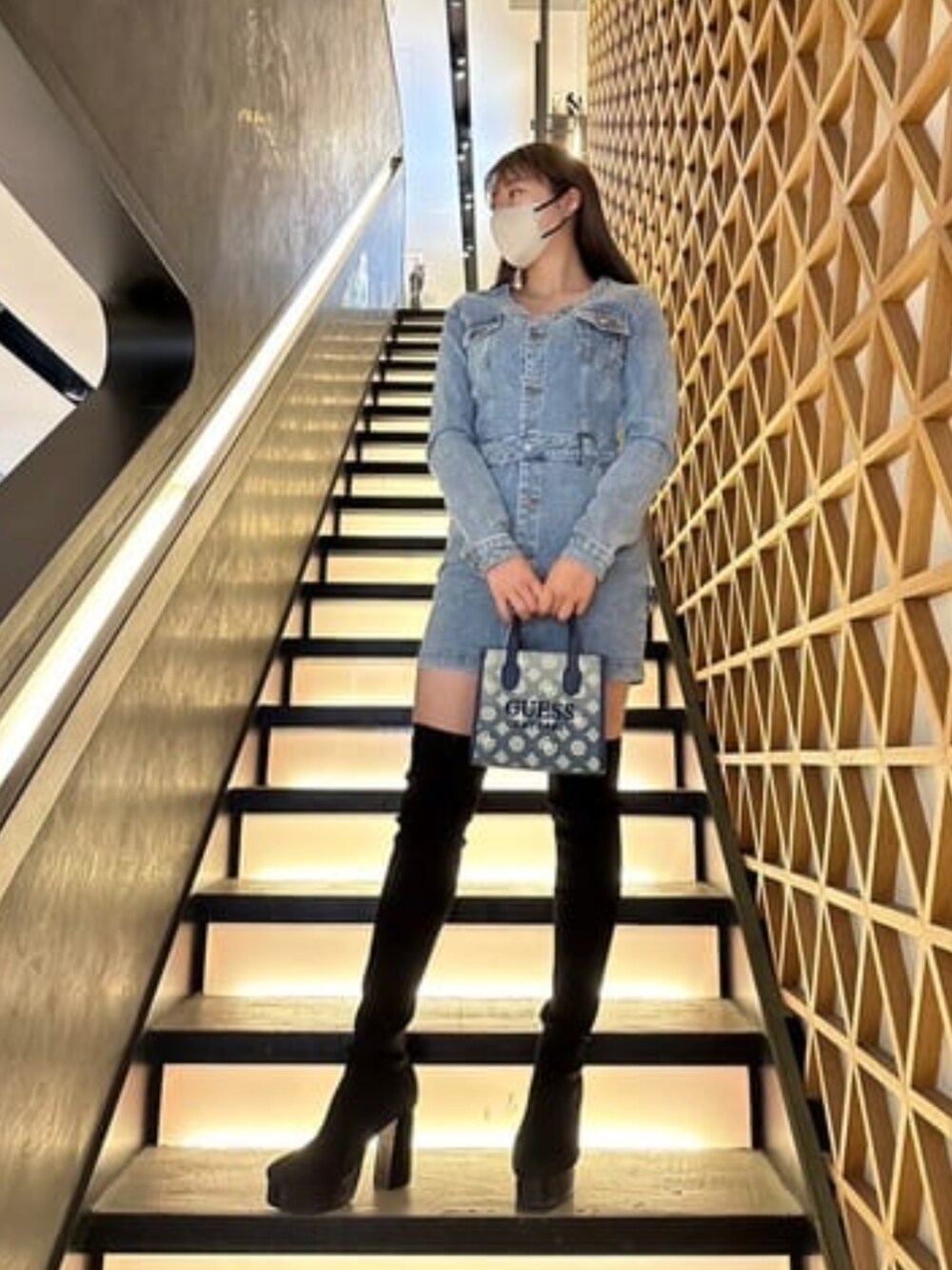春らしいデニムのワンピースです 生地は硬すぎずボディラインを綺麗に見せてくれる形になっていて胸元も詰まりすぎていないのでデコルテを綺麗に見せてくれます! 膝上くらいの長さなのでロングブーツとの相性も抜群!