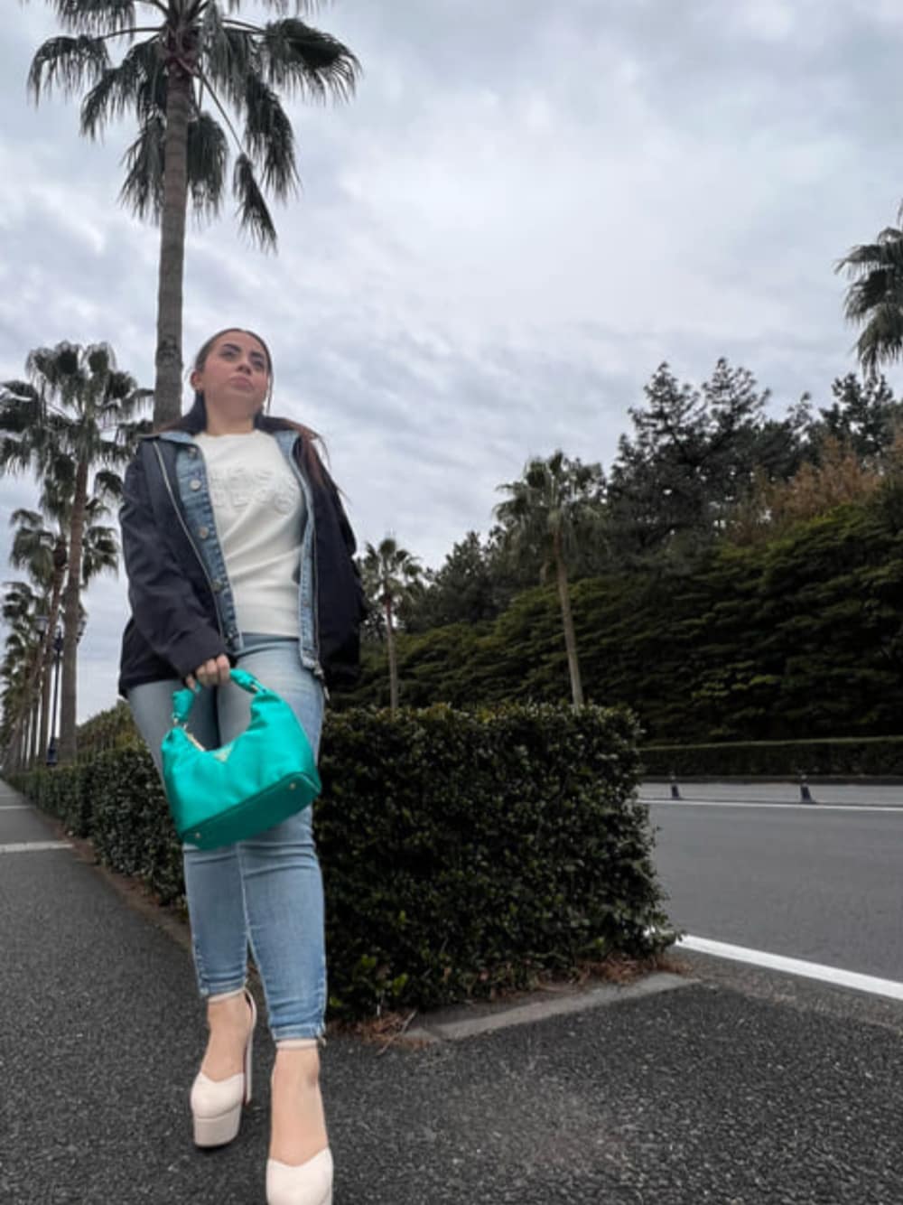 オーバージャケットがメインのコーデ⭐︎ デニムの部分は取り外しができるのでその日のコーデに合わせられるからGOOD‼︎ ニットトップスはロゴの刺繍のキラキラが可愛くて良き⭐︎ デニムと相性抜群の白トップスはかなりオススメ♡ もう少し暖かくなったら上着なしでも良さそう⭐︎ BAGは1番のオススメ♡ このターコイズブルーは他ではない色味がホント可愛い♡ 長財布は入るけど取り出しが少し大変‼︎ 見た目より物入るので良き♡