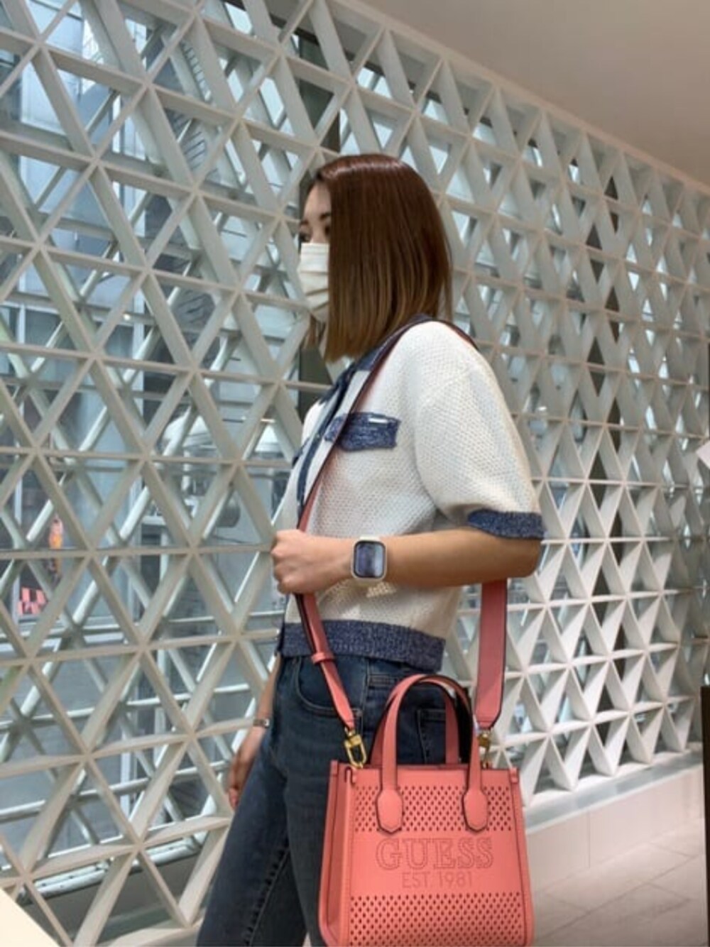GUESS JAPAN(GUESS JAPAN)のトートバッグ「KATEY Perforated Mini Tote」を使ったコーディネート