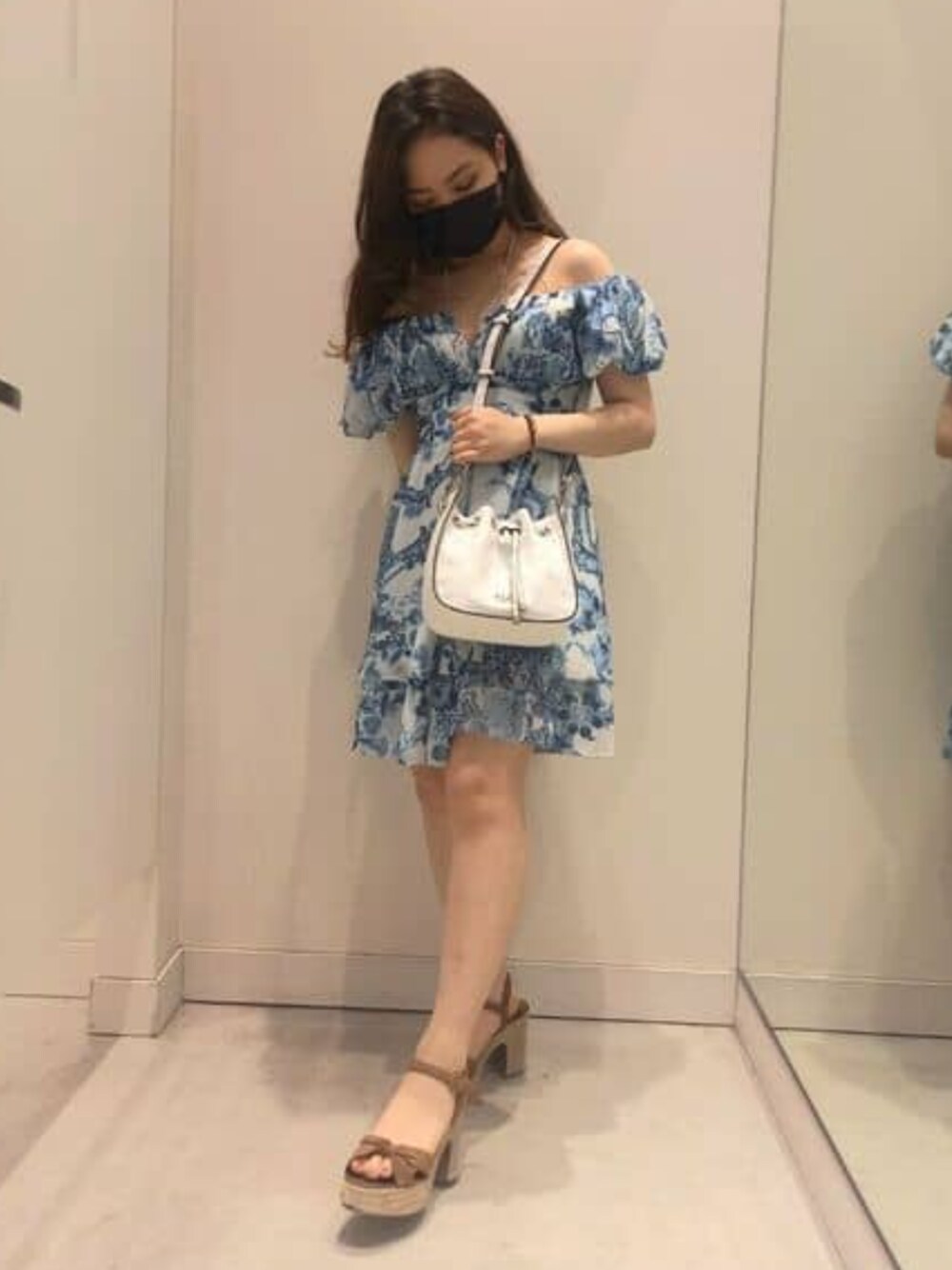 Aラインドレスガーリーでかわいいイメージになります。 お尻隠したい方などにもオススメ! パフスリーブでボリュームがありかわいい。 胸元にひもがあり首に巻いたりそのままリボン結べれていろんな着方があり楽しめれます。 白のバックで全体を落ち着かせコーデがまとまります。 ウエスト細く見せてくれる効果もありスタイルアップ!