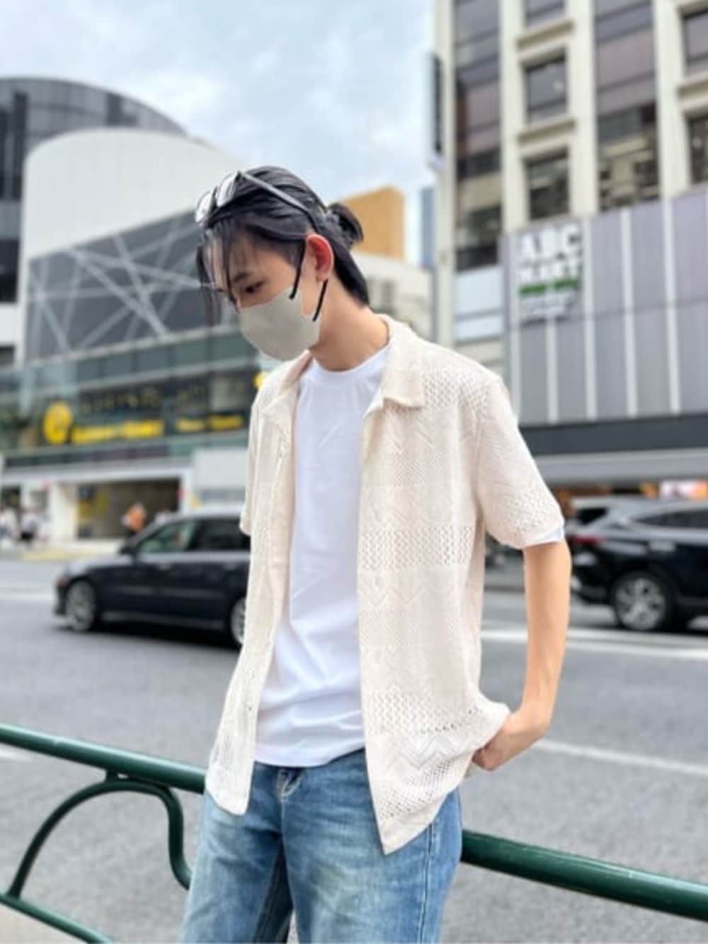 今回着用しているのは、今季のメンズトレンドアイテムのニットシャツです!開襟にもなっていて涼しげな印象のあるシャツで、今年の夏にオススメです