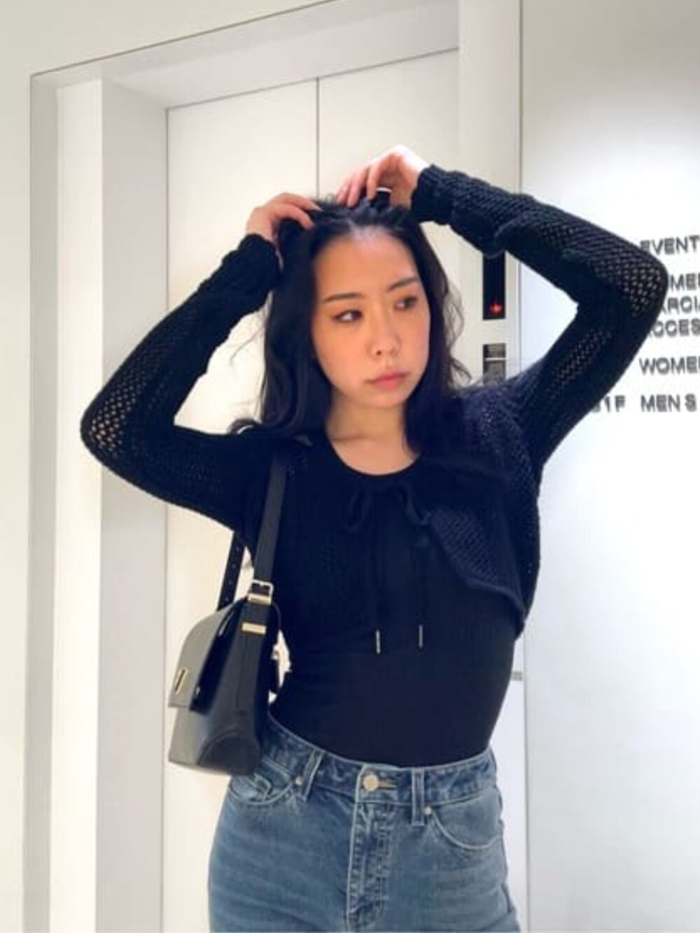 オールブラックで露出も少ないのに、セクシーに魅せられるメッシュのカーディガン。 海外のy2kスタイルで大流行していますが、大人っぽくコーディネートしてみました。 インナー次第で雰囲気がガラリと変わります。