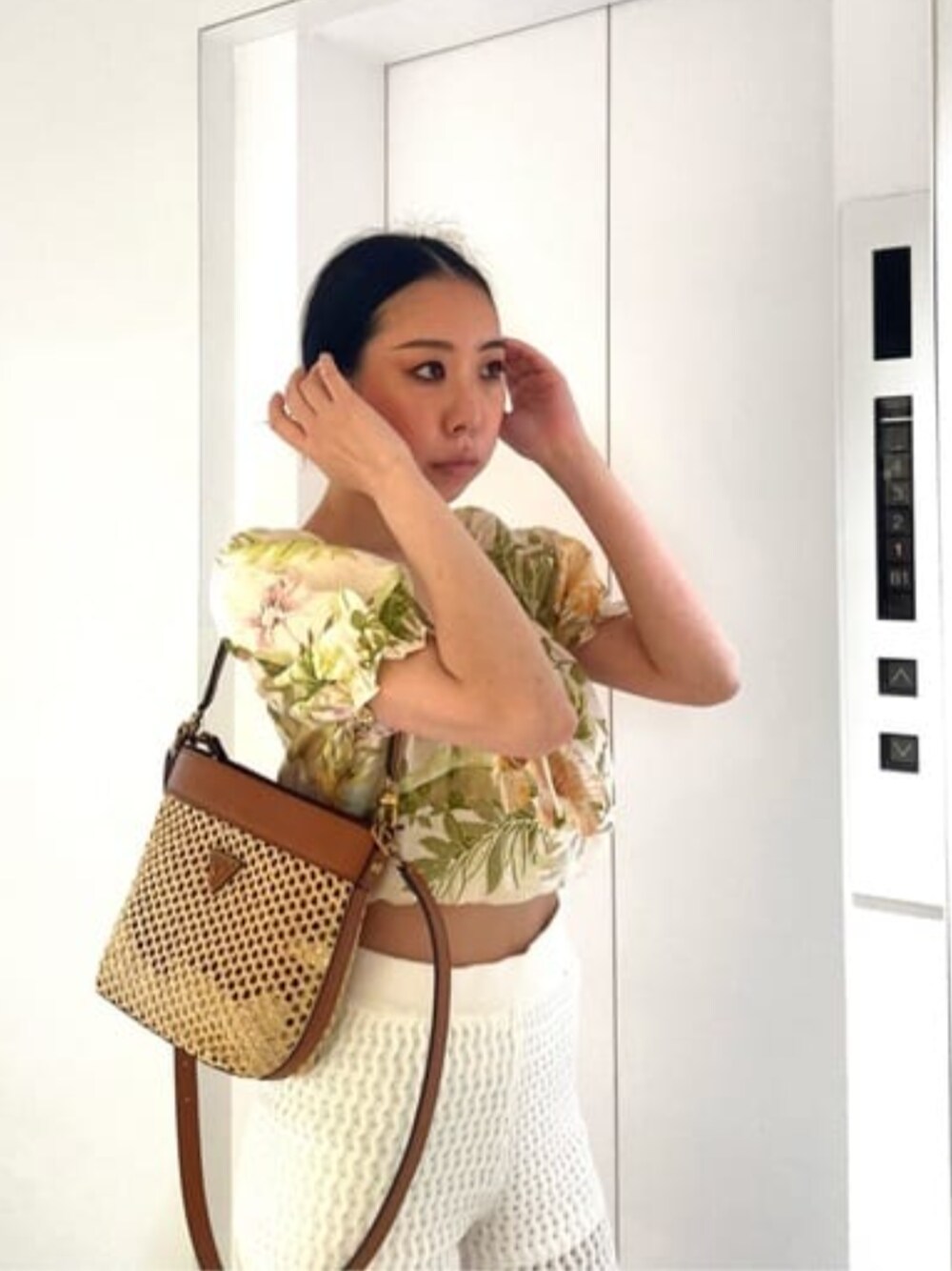 夏休みに旅行するためにコーディネート買いするならこれで決まり! 夏の定番アイテムばかりを使いました。 丸ごとココナッツジュースを飲みたいですね。