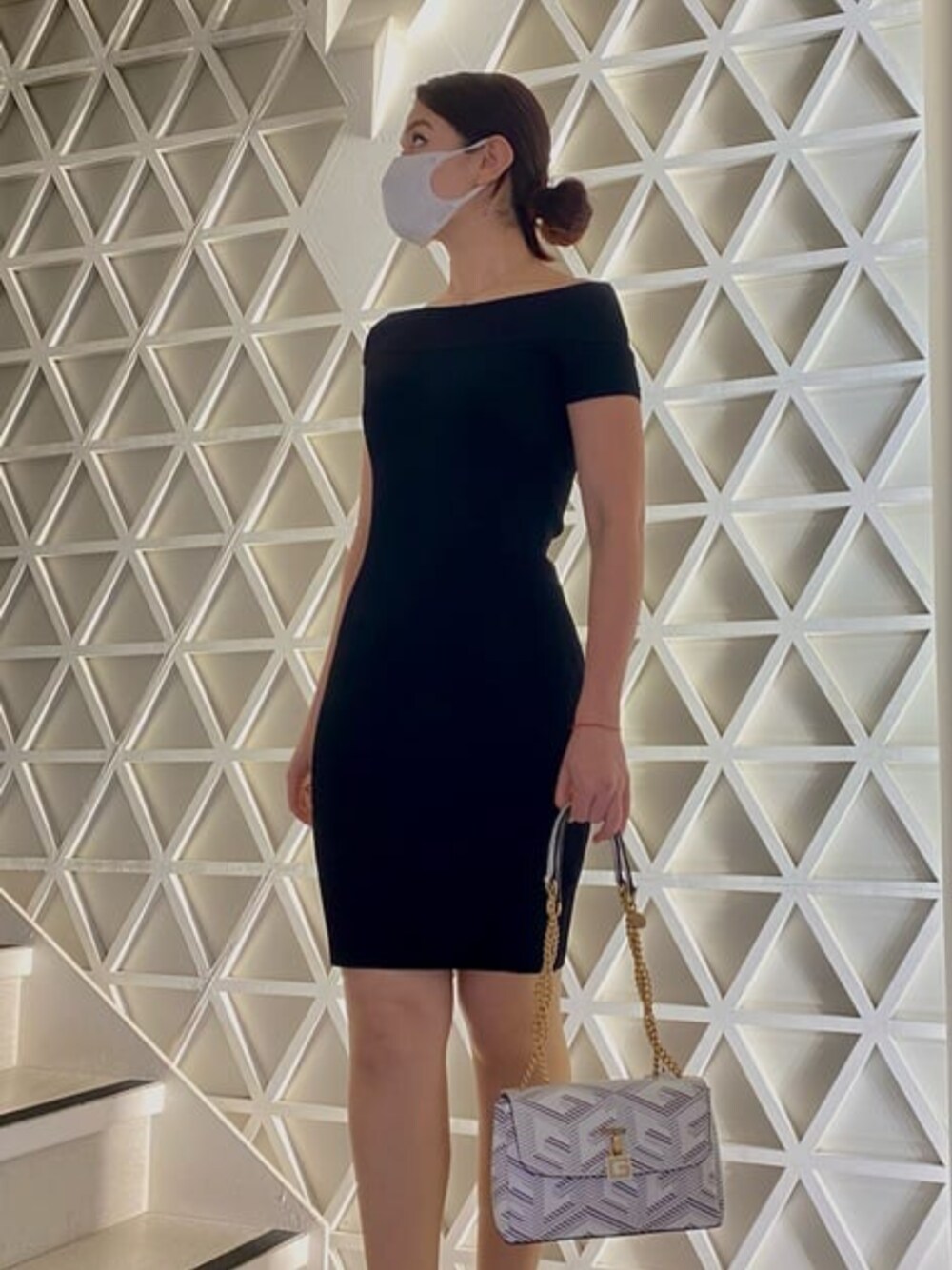 新作のドレス👗🤍 タイトめなドレスに人気のGキューブ柄のハンドバッグを合わせました♪デートや友達とのお出かけにおすすめなコーデです✨ ≪着用サイズ≫ ドレス S