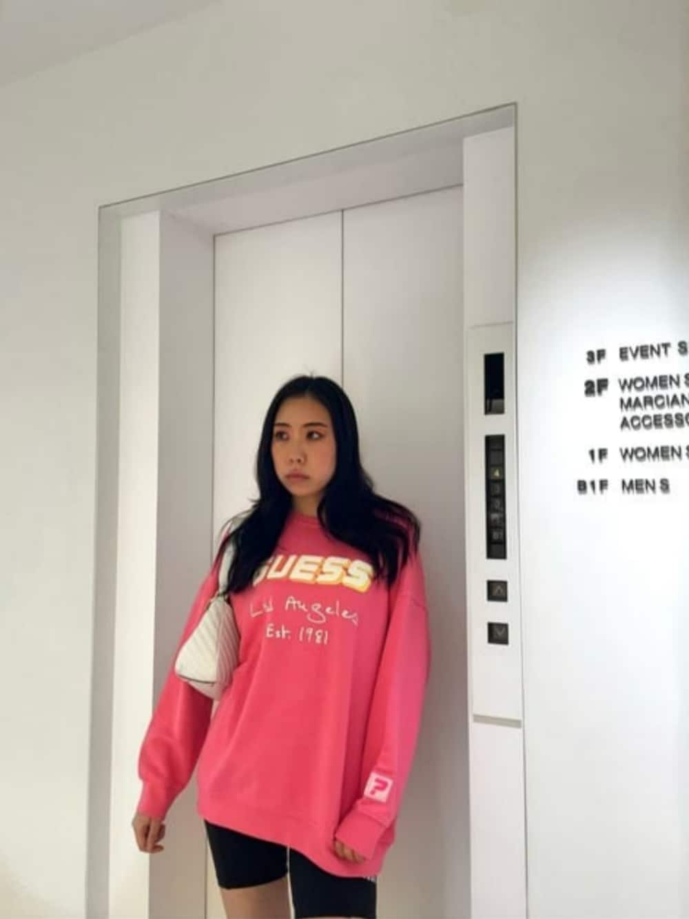 オーバーサイズのスウェットはバイカーショーツと合わせて海外風にコーディネートしました。 ショッキングピンクが春らしく、デニムやショートパンツと合わせても可愛いです。