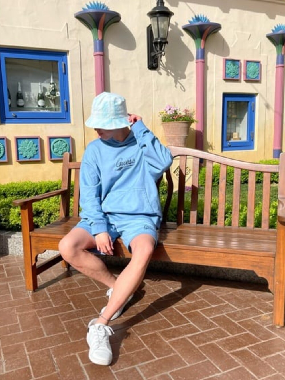 GUESS Originalsセットアップはカラーバリエーションは3色 この色は他にない色で個人的にも好きです! セットで着れますし単品でも◎ サウナ後、ジムに行く時のコーデとしてもオススメです!