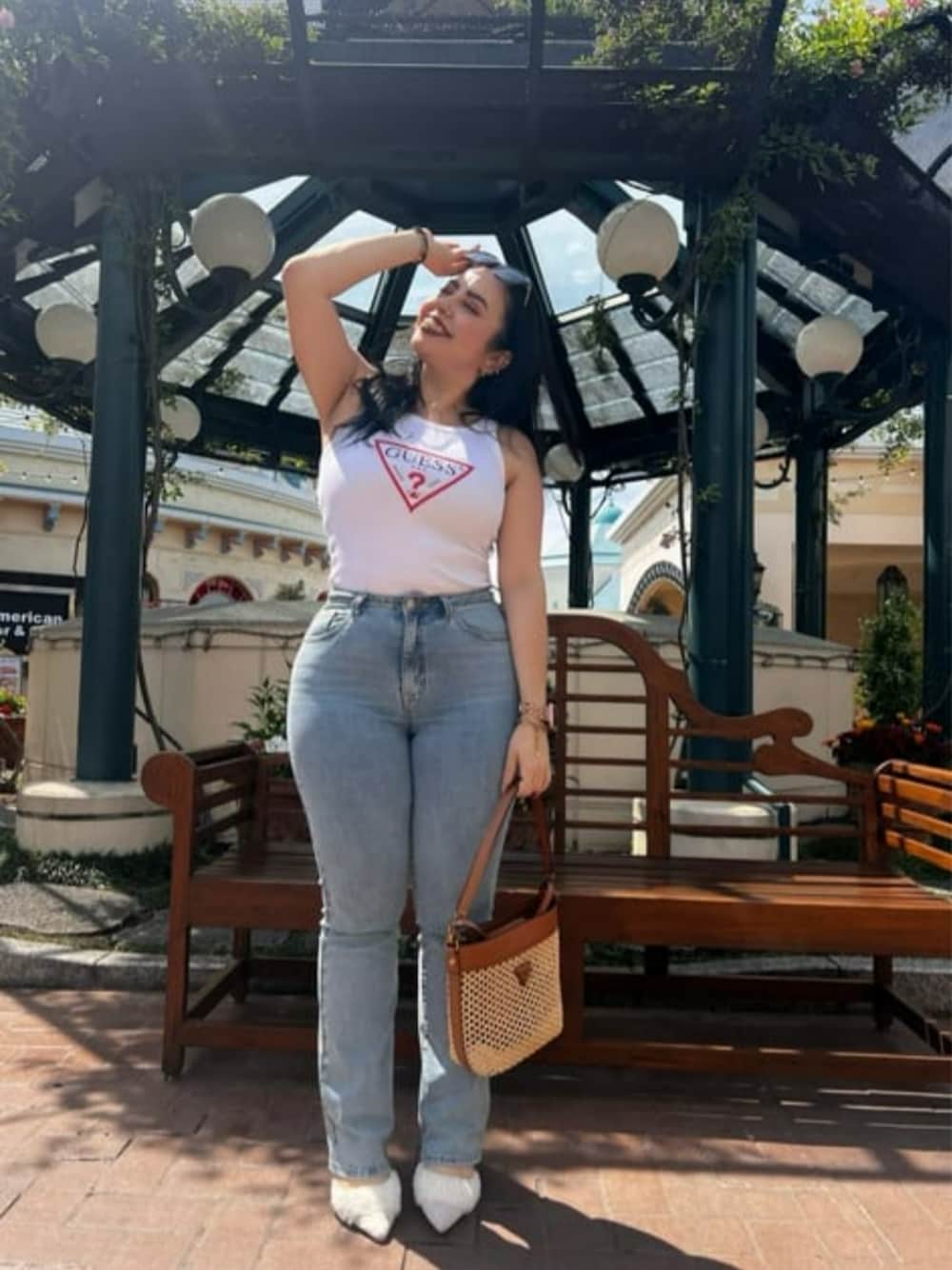 guessといえば定番の三角ロゴ▽ タンクトップ似合う季節もすぐそこ‼︎ カゴバックでさらにSUMMER◎