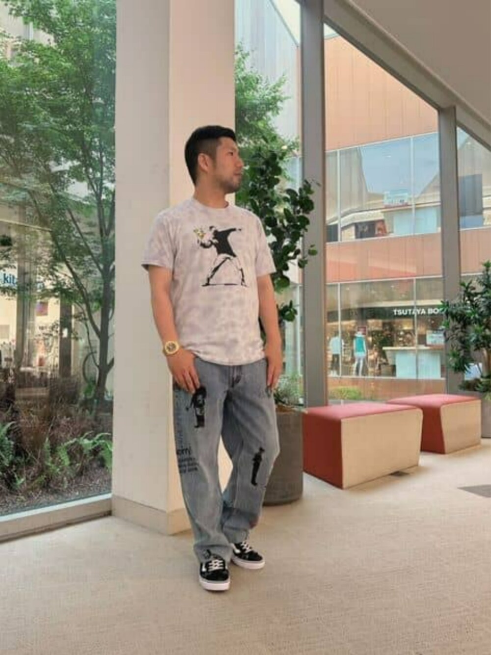 GUESS JAPAN(GUESS JAPAN)のデニムパンツ「GUESS X BRANDALISED(R) WITH GRAFFITI BY BANKSY Classic Fit Denim Pants」を使ったコーディネート