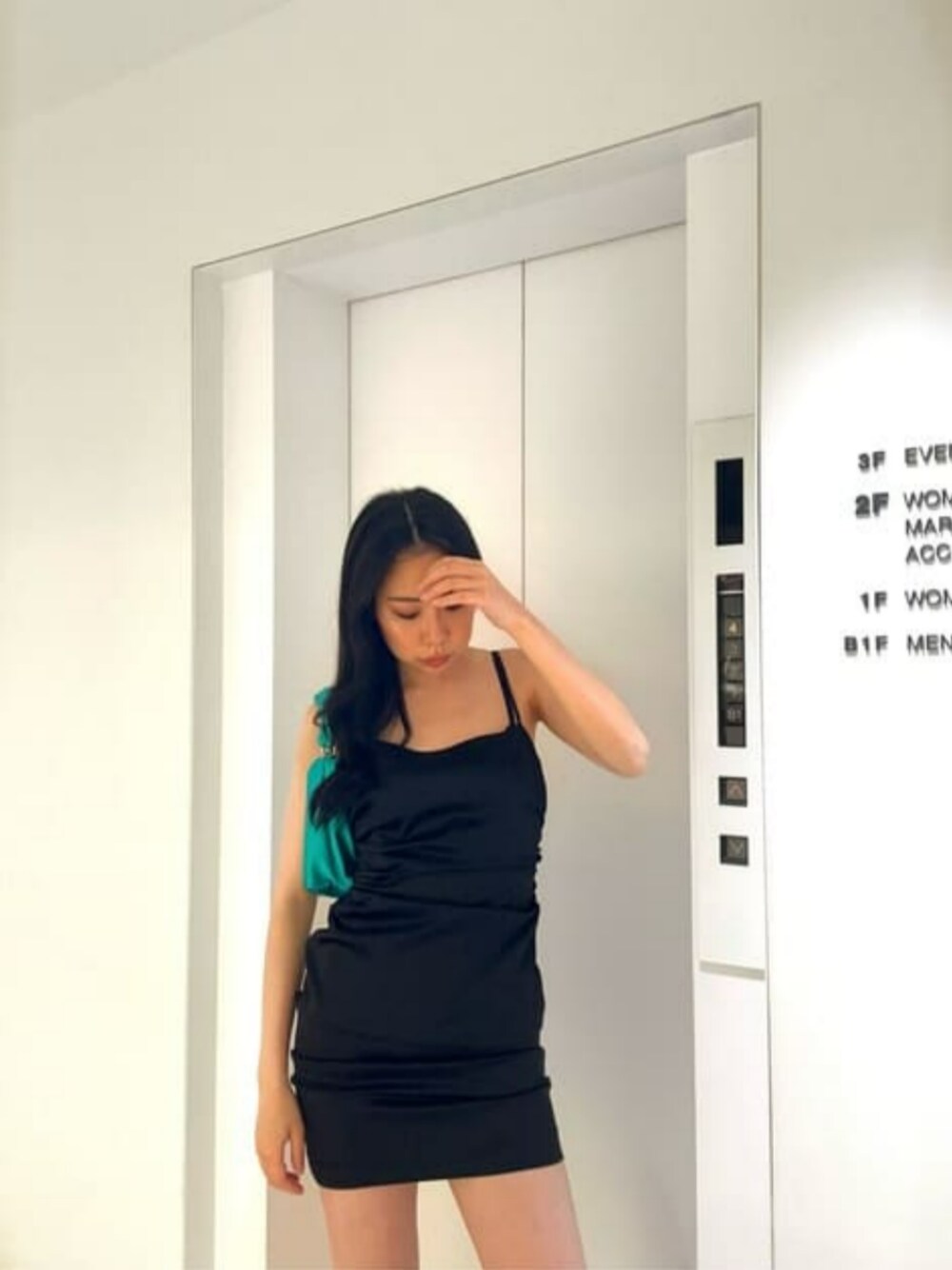 サテン生地がセクシーなキャミワンピ。 同生地のバッグと合わせて華やかにコーディネートしました。 デザインではなく、光沢でキラキラ感を出して差をつけることができます!