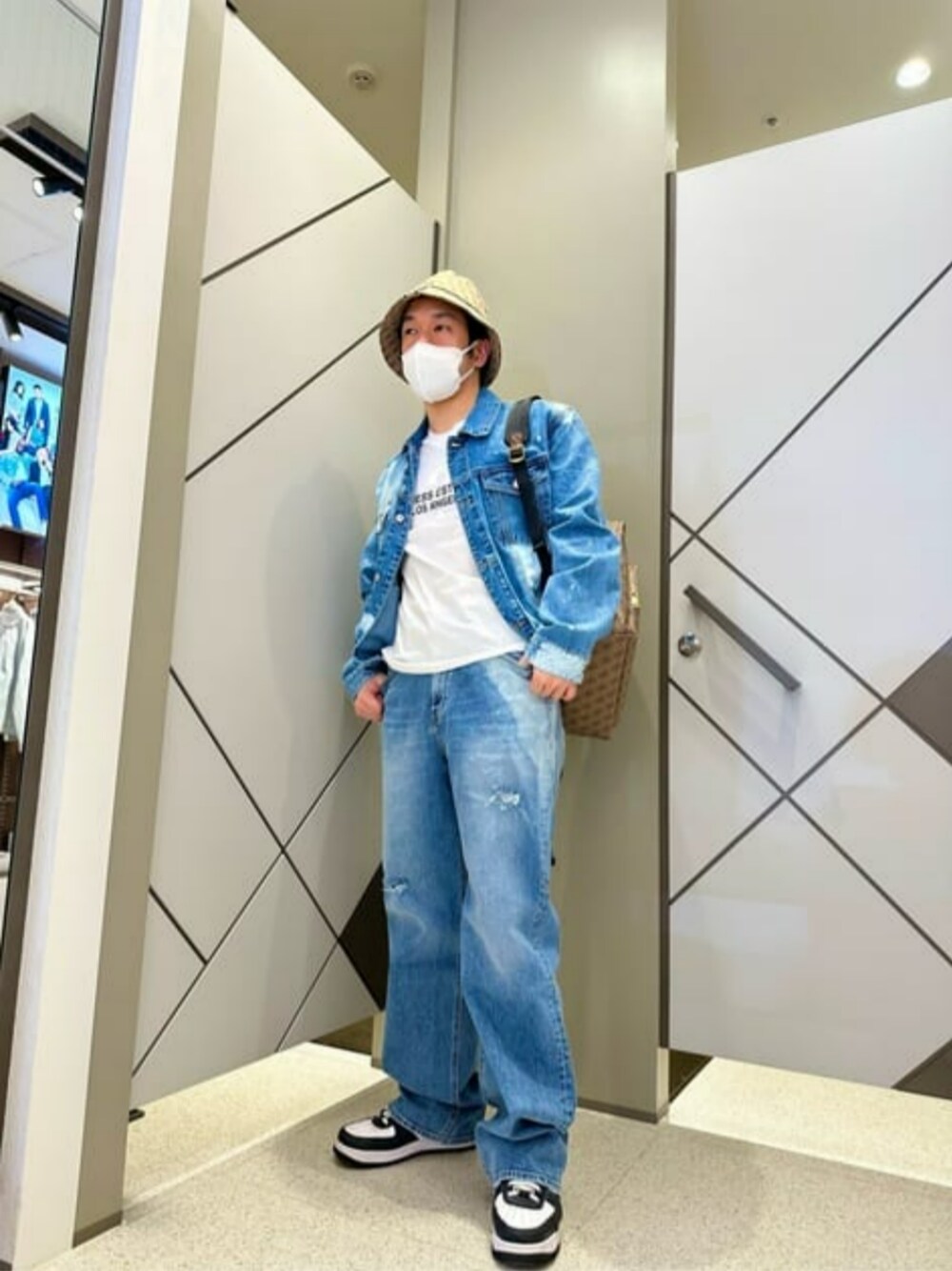 GUESS JAPAN(GUESS JAPAN)のデニムパンツ「L-Tone Relief Discharge Painting Wide Denim Pants」を使ったコーディネート