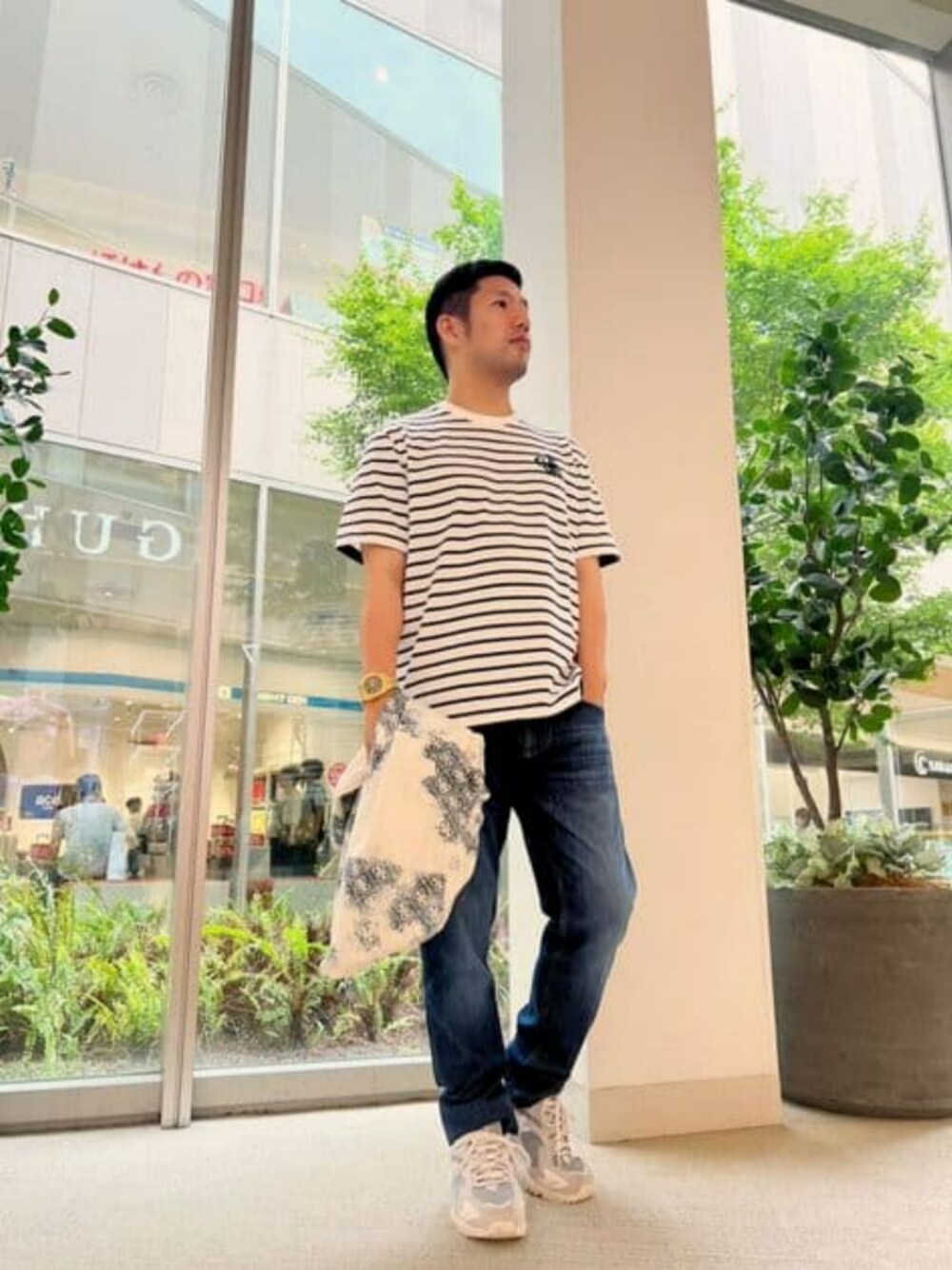 肉厚な生地感が着心地バツグンの ボーダーTは1枚で着ても◎ GUESS代名詞の テーパードデニムもセール価格なので この機会に履いてみて下さいね♪