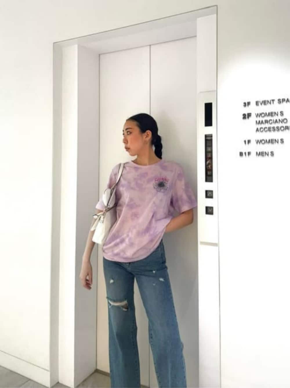 夏といえばタイダイ柄!胸元のフラワープリントが可愛いです。 上下ともにルーズシルエットを意識しました! ミュールやスニーカーと合わせるのがおすすめです。