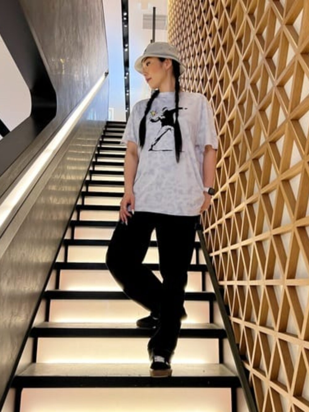 BANKSYアートとのコラボアイテム(^^) フロントに大きいプリントが目立つので、シンプルデニムと合わせてストリートコーデに!! オーバーサイズフィットなので、大きめサイズでショートパンツやレギンスと合わせても可愛いです!