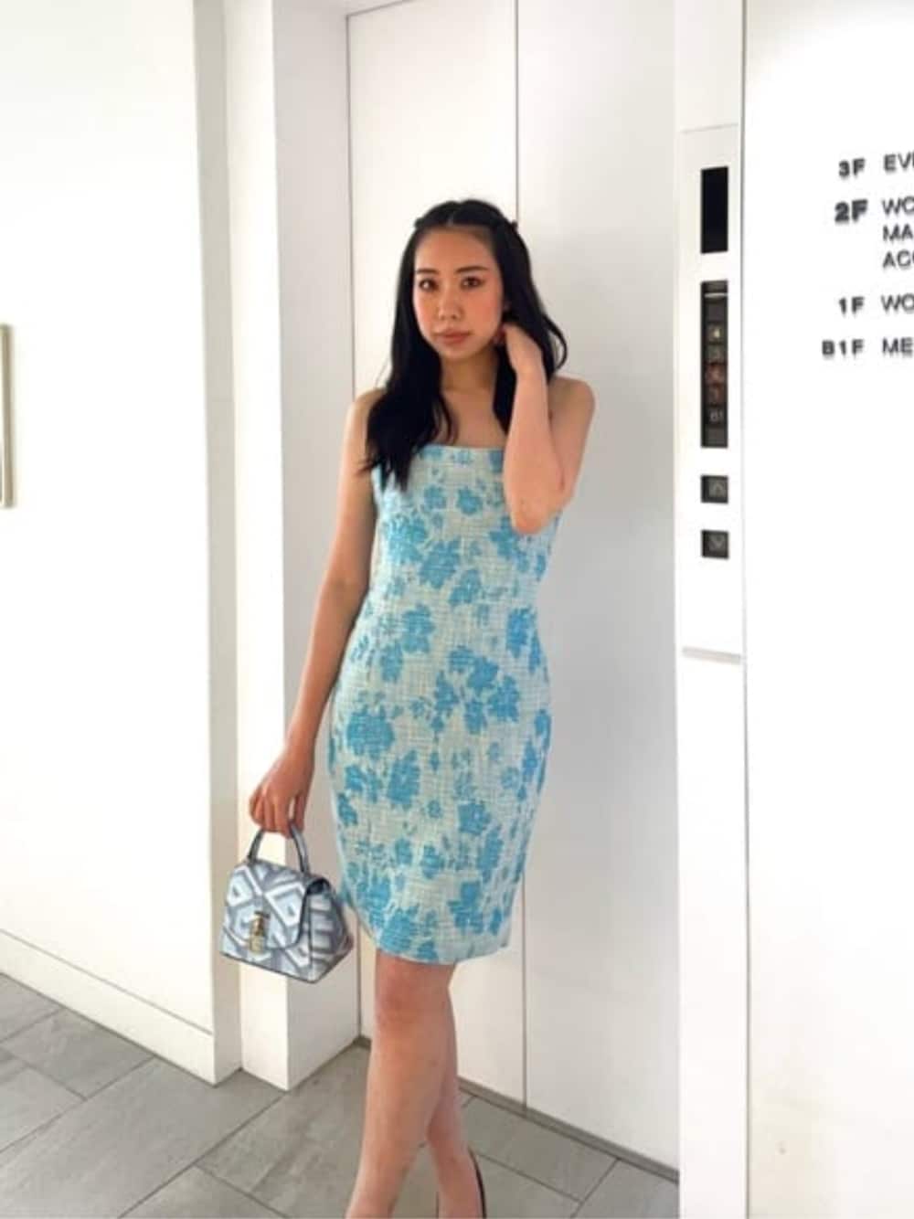 ビバリーヒルズでチワワを飼ってるママのコーデ。 移動は基本車なので、動きやすさは重視せずに高いヒールを合わせる感じです。 上品なお花柄が可愛いです!