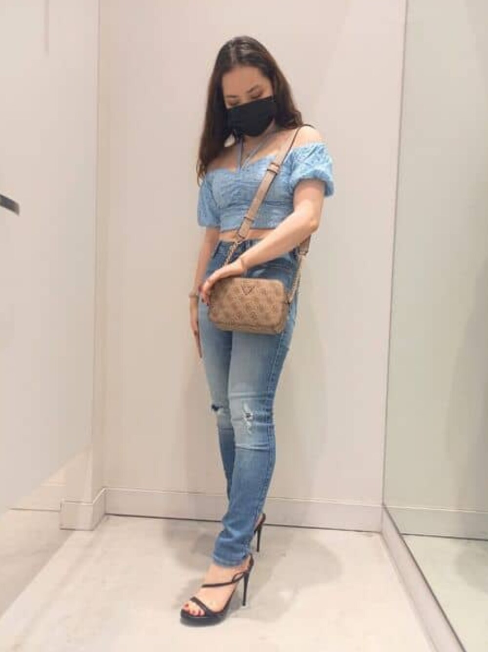 スキニー入って大人っぽく! トップス会わせやすい青ですごくかわいい! ダメージが入ってるスキニーでスタイルアップ効果あり!ダメージはリペアされてるので肌は見えないタイプです。