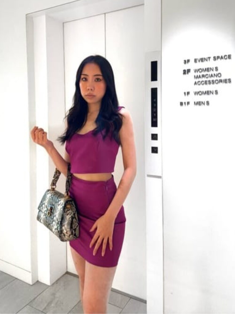 シンプルなデザインも、セットアップになると可愛さ倍増! 艶っぽい生地が夏にピッタリです。 ゴールド系のアクセを合わせると、ゴージャス感が出るのでおすすめです。