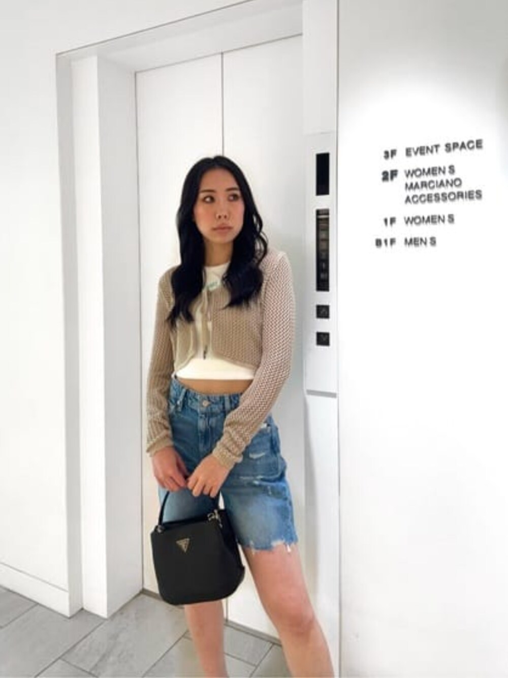 GUESS JAPAN(GUESS JAPAN)のハンドバッグ「ALEXIE Small Bucket」を使ったコーディネート