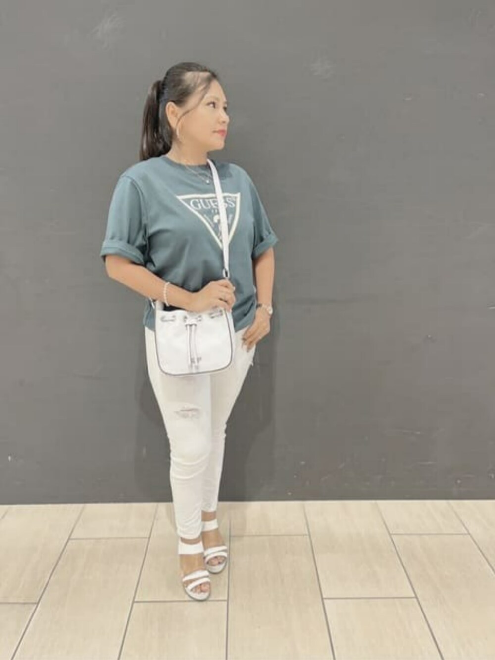 GUESS JAPAN(GUESS JAPAN)のハンドバッグ「GALERIA Bucket」を使ったコーディネート
