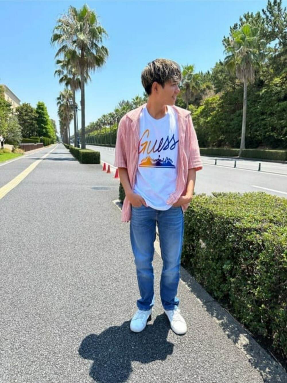 ニットジャガードシャツはメッシュ感のある編み込みとストライプとデザイン性溢れた1枚です! 生地も柔らかく1枚で着てもTシャツの上から羽織っても◎ Sサイズ着用してますが袖が長めです! Tシャツのグラデーションデザインが 夏らしさを感じます♪ デニムはシルクタッチで肌触りがよく履き心地抜群!柔らかくストレッチも効いていてゆったりすぎずぴったりすぎずシルエットも綺麗です!