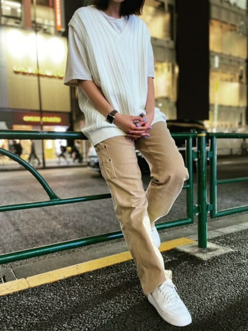 GUESS JAPAN(GUESS JAPAN)のベスト「GUESS Originals Eco Sweater Vest ベスト ベスト」を使ったコーディネート