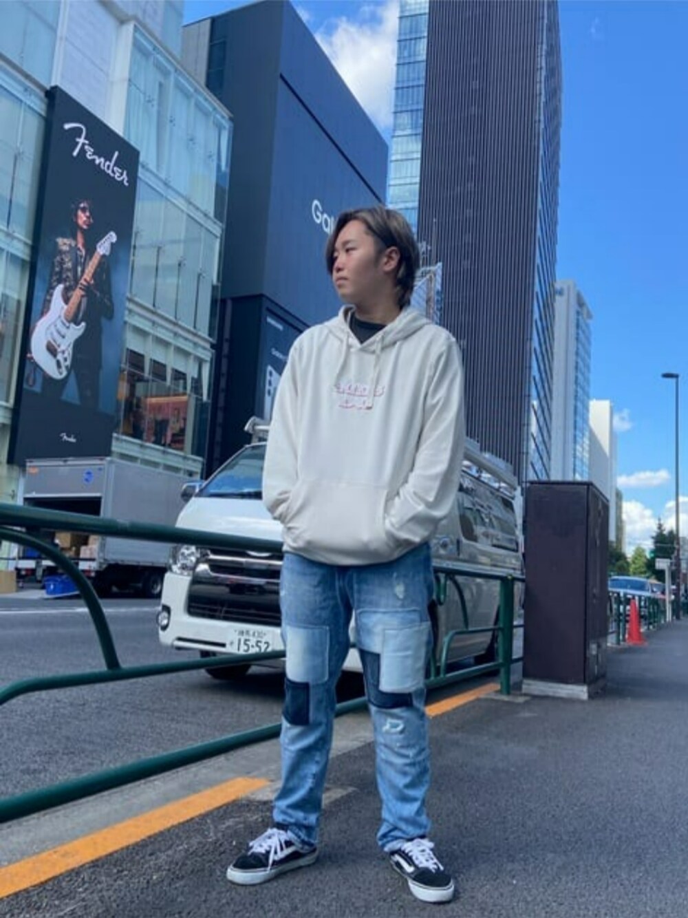 GUESS JAPAN(GUESS JAPAN)のデニムパンツ「Eco Patchwork Relaxed Tapered Cropped Jeans デニムパンツ ジーンズ」を使ったコーディネート