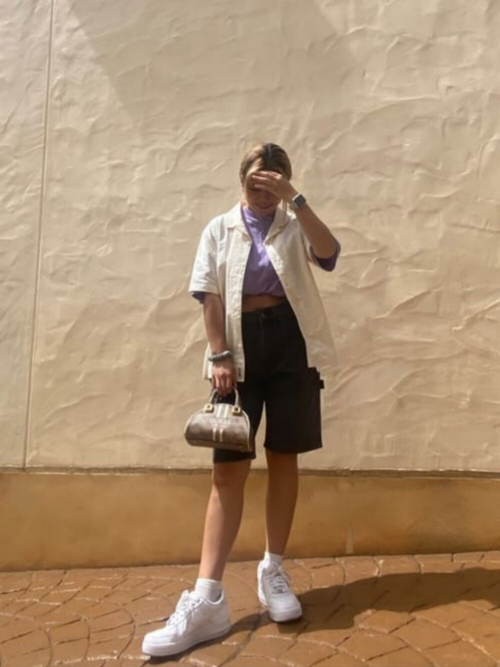 mens' GO coordinate🎭 トップスはどちらもオーバーサイズ❗️ カーペンターのメンズハーフパンツはベルト等で調節すれば女性でもメンズライクで着れます ミニバッグは斜め掛けも可❕ 小さくてかわいいです
