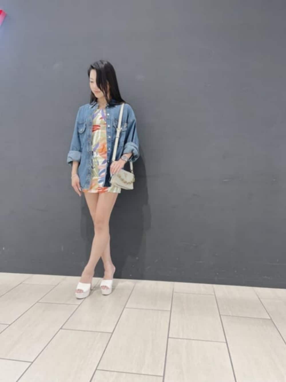 大人っぽいデニムコーデ♡♡ タイトなデニムワンピースはスタイルアップ効果抜群です!!! しっかりストレッチが効いているので動きやすさも◎ 着用サイズ oen piece,denim shrt 共に XS size
