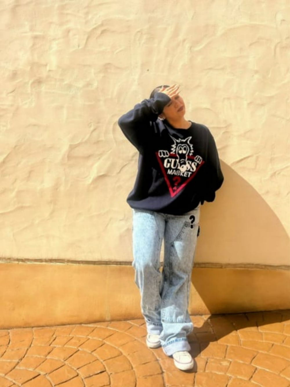 ストリート系に憧れたよコーデ⭐︎ 前も後ろもデザインが可愛いニット◎ ケミカルカラーのデニム✖︎ワッペンがおすすめポイント!
