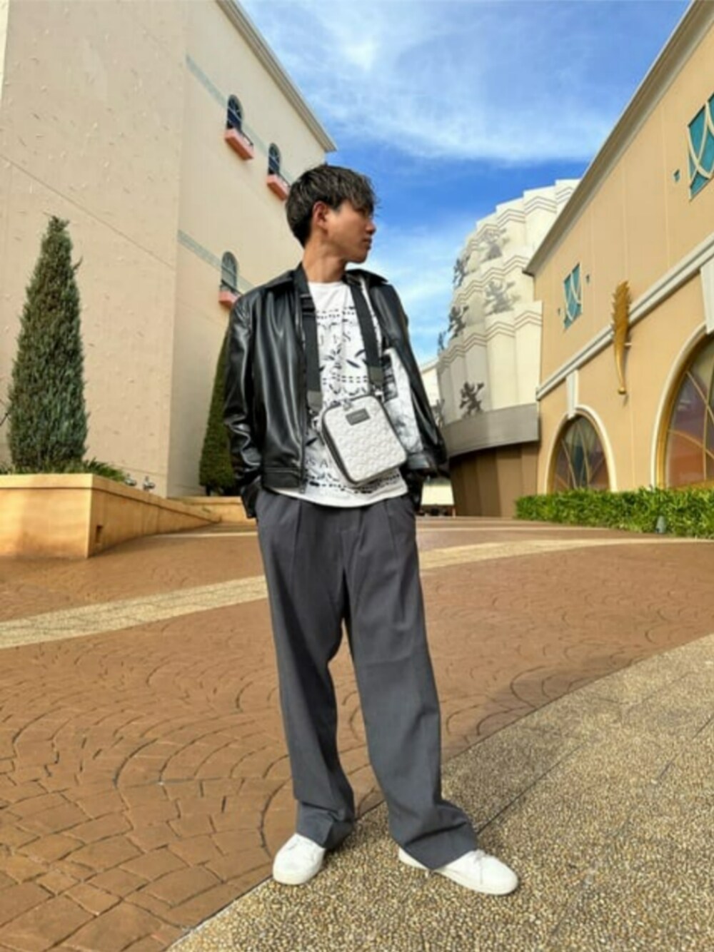 秋冬向けのウーブンパンツはウェスト部がゴムになってるのとシルエットがゆったりめなので履き心地抜群!!どんなコーデにも合わせやすいので幅広いコーディネートができます⭐︎ レザージャケットは薄手で軽いのがポイント! 裏地にもこだわりがあり秋、春と昼夜で寒暖差がある時期にはインナーに半袖、ロンTと合わせても◎