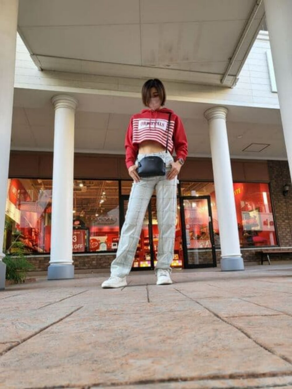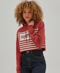 クロップド丈のフーディは ハイウエストのパンツと合わせて脚長効果あり!! カジュアルなスタイルでもチラリと肌見せで Sexyさをプラス♪