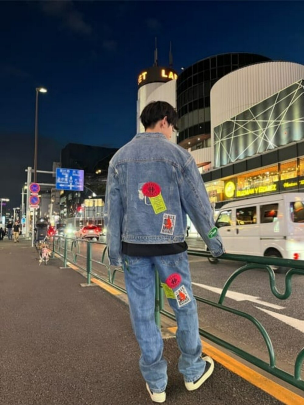 コラボデニムセットアップ! 特徴的なワッペンが全体的に施されていて ストリート感満載のセットアップになっています!シルエットはややゆったりめです!