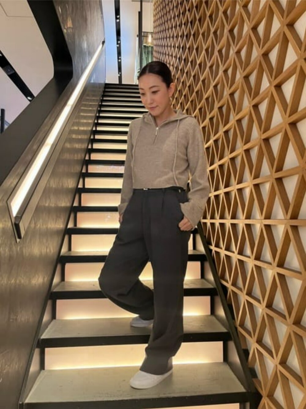 トップスはレディースアイテム! ボトムスはメンズアイテムで合わせたMIXコーディネートです。 ニット素材とウール地ボトムスで秋を感じさせるシンプルファション!