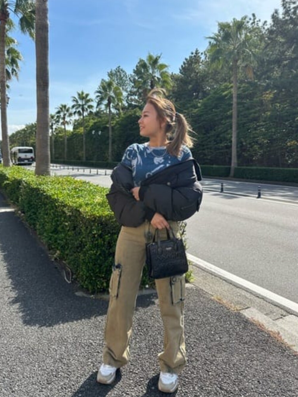GUESS Originalsのアイテムを組み合わせたストリートコーデ トップス:ショート丈でストレッチあり。女性の顔がデザインされていてコーデのアクセントにピッタリなアイテム! デニム:バギーデニムで1着ごとにデザインが異なりオリジナル感のあるアイテム!形が太めなので動きやすく気心地のいいアイテム✨ アウター:MA-1のショート丈で袖と前にポケットが沢山付いてます!首元のファーは取り外し可能! ハンドバッグ:今1番売れてるミニトートバッグ! 太めのショルダー紐つきで斜めがけにもできます!メタリック感のあるデザインで色んなコーデにも合わせやすいアイテムです!