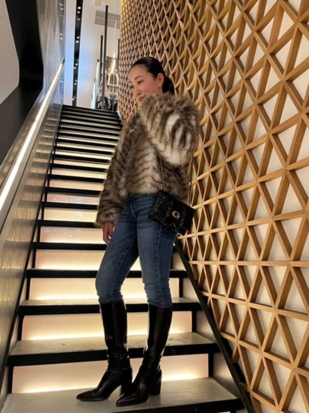 Marciaroのファーコートにデニムスタイルでカジュアルに着ています。 珍しい柄のファーコートは毛並も綺麗に仕上げてありオススメアイテムです! ハンドバッグもショルダーバッグになりますので使い勝手がいいです!