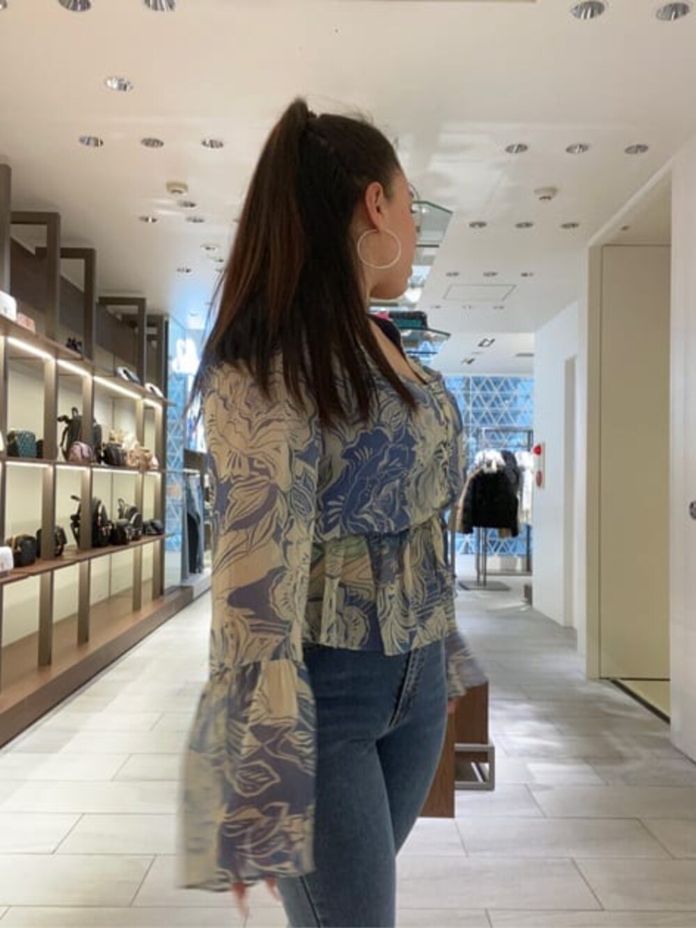 春コーデ♡ シンプルですがトップスの花柄でオシャレ ミニバックと合わせ可愛さアップ ヒール10㎝です。