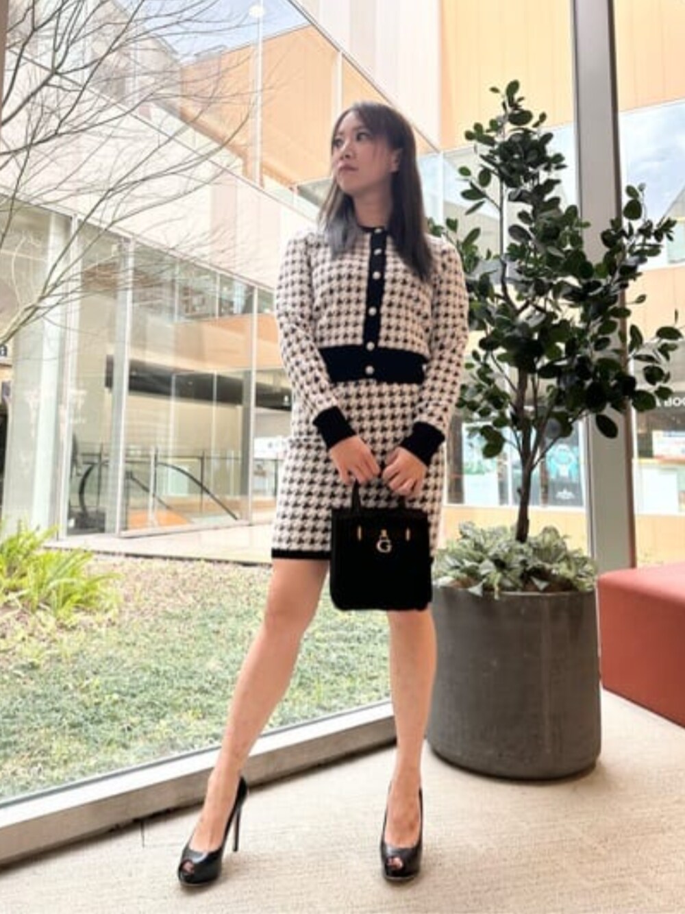 GUESS JAPAN(GUESS JAPAN)のスカート「Violet Houndstooth Sweater Skirt スカート」を使ったコーディネート