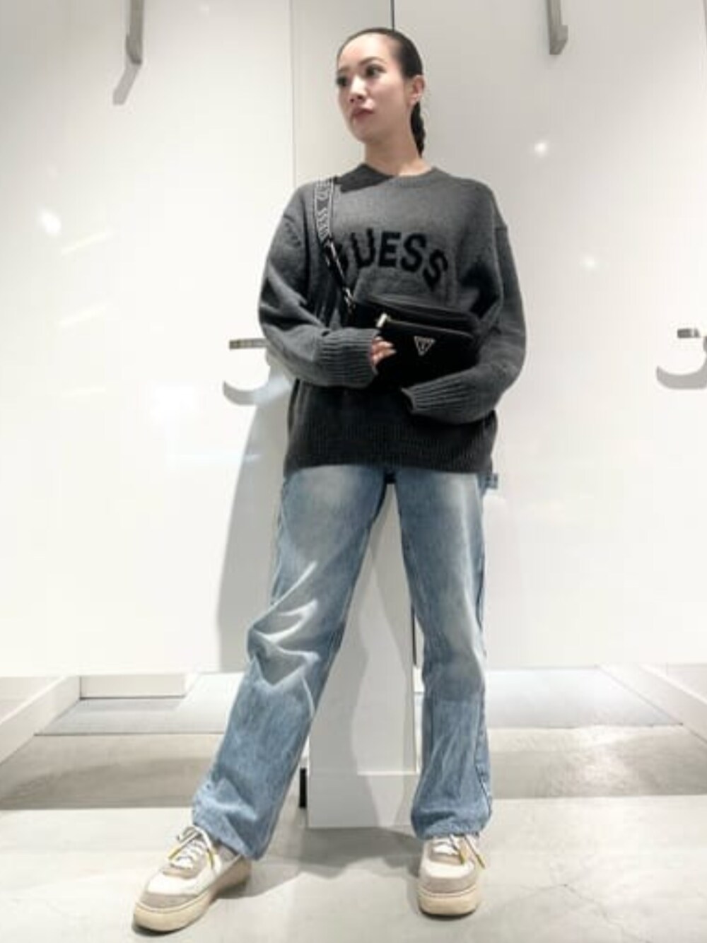 【Tops】Sサイズ着用 メンズのオーバーサイズニット♪ 肩落ちタイプでゆるっとシルエットが可愛い♡ 【Denim】26インチ着用 ウエストで合わすと普段通りで◎ 足周りのゆるっと感を持たすにはサイズアップがオススメです♡ ゆるゆるリラックスコーデ♪ 【Bag】 ベルトロゴが印象的はボディバッグ★ 長財布も入っちゃいますー! 男女兼用で♡ ***ECサイトで完売商品でも、店頭でご用意がある場合もございます♥お店に電話、またはインスタのDMよりお問い合わせ下さいませ♡ ***