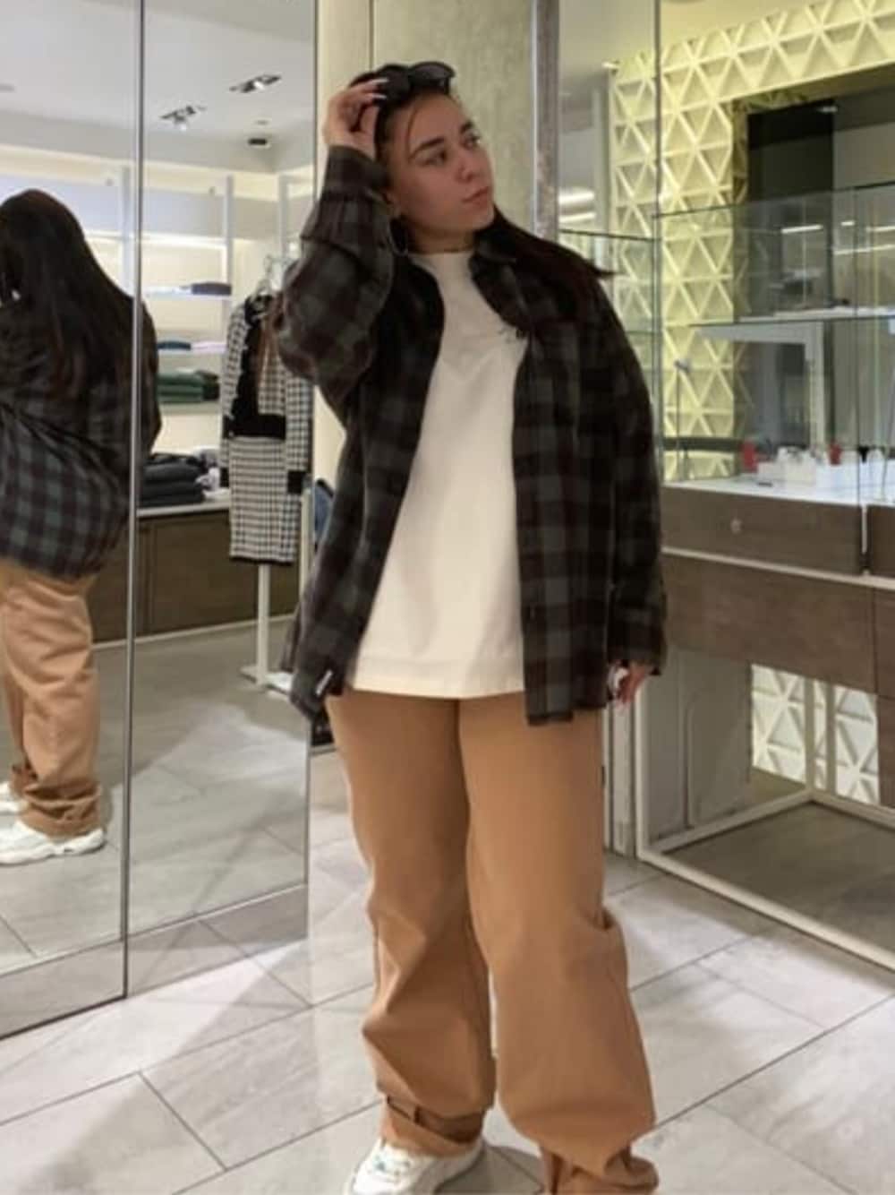 GUESS ORIGINAL ♡ メンズ新作!! シャツの色がやわらかくて色んなコーデができます。 私はストーリートコーデにしました! Tシャツはユニセックスでロング丈 サングラスは原宿店限定です。