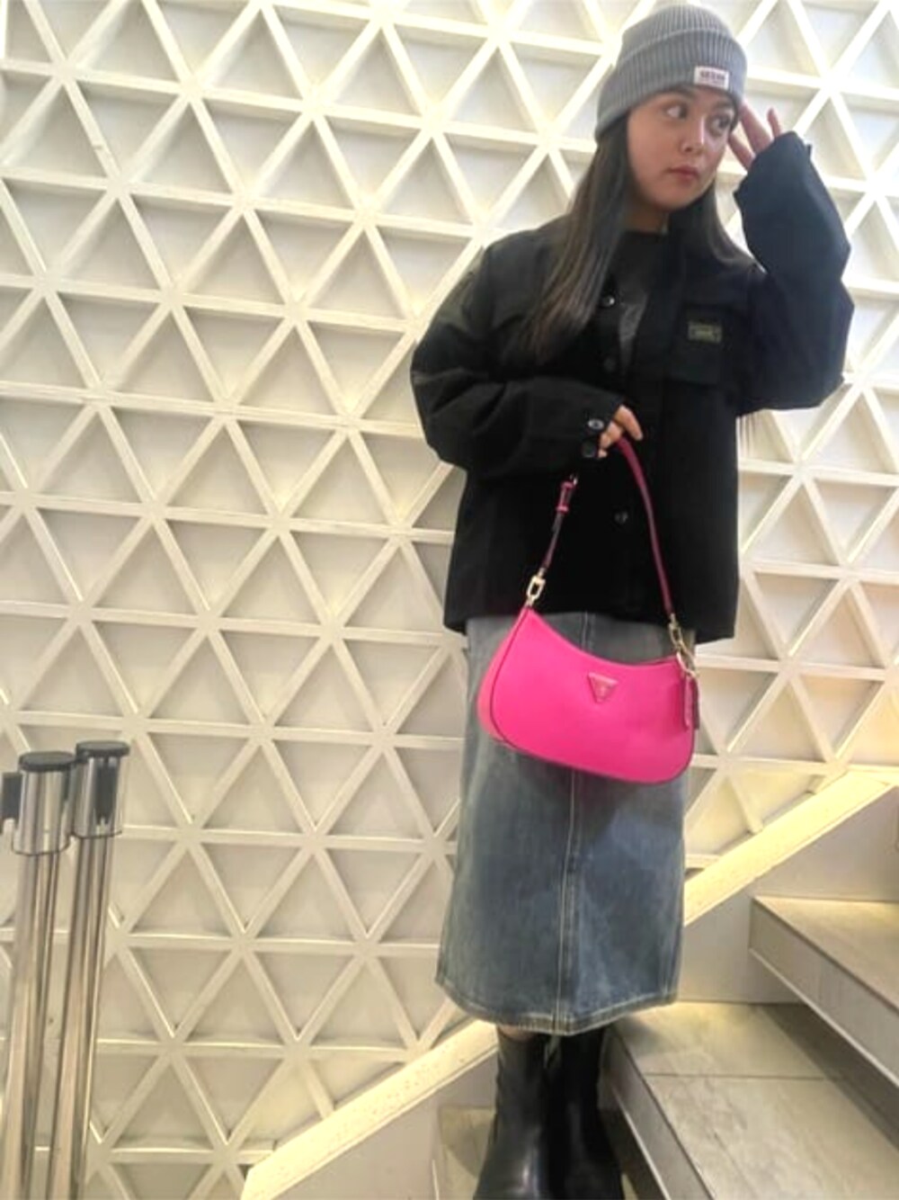 ロングスカートにオーバーサイズのトップスを合わせて今っぽいコーデにしてみました! アクセントとして、ビビットピンクの肩掛けバッグが春らしさを演出してると思います。 よかったら参考にしてください!