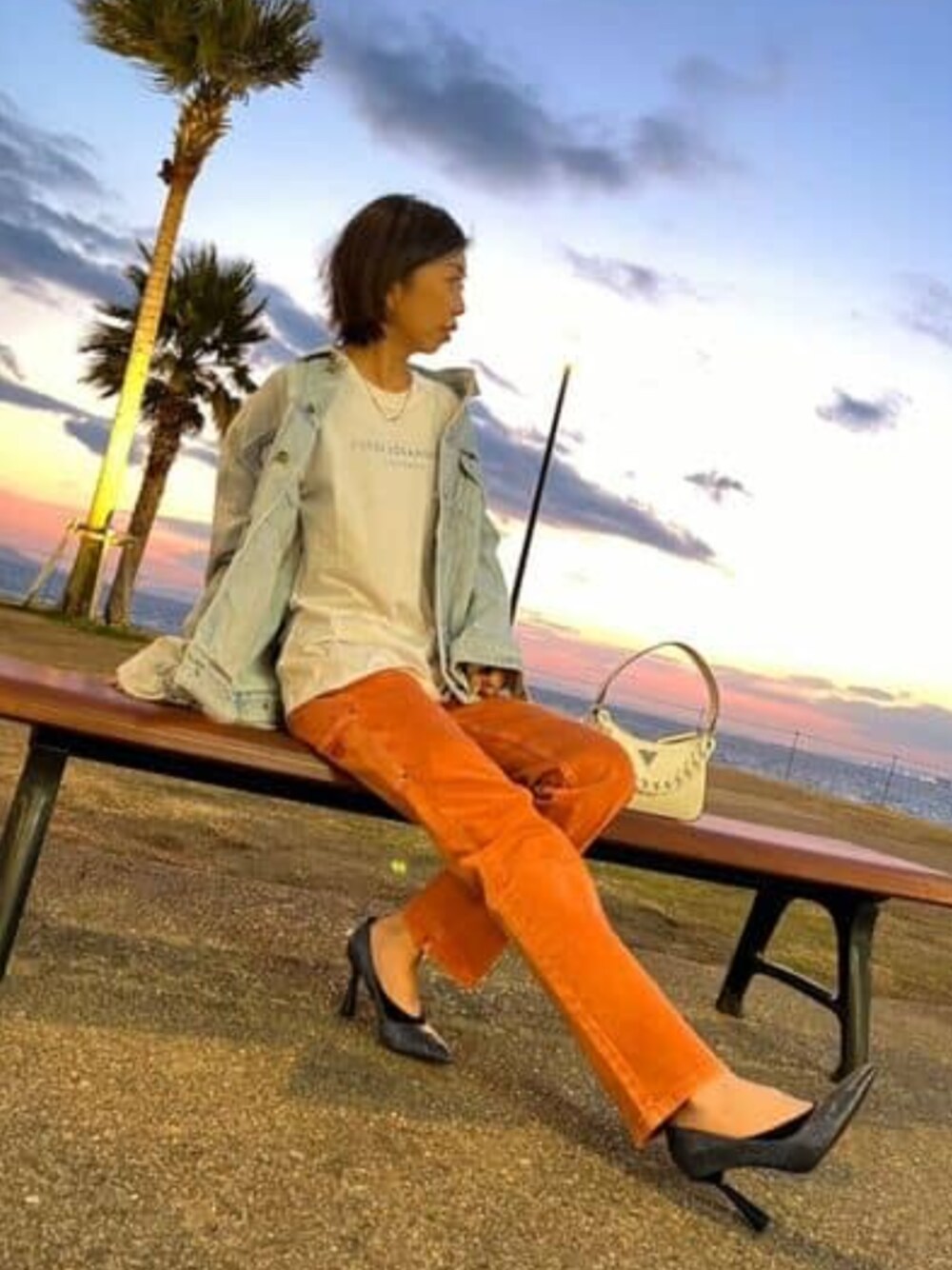 大きめメンズのデニムジャケットにカーペンターパンツでメンズライクコーデ👜 ヒールを合わせて女性らしさをアピール😳 スニーカーと合わせてカジュアルに決めてもGOOD◎