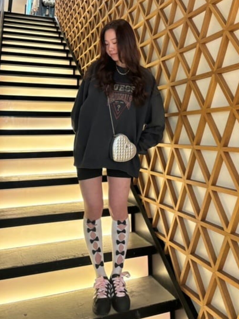 オーバーサイズのトレーナーにハートのバックで女性らしく甘辛ミックスできちゃいます! 店頭でも人気のハートバッグは軽くて使いやすい!!