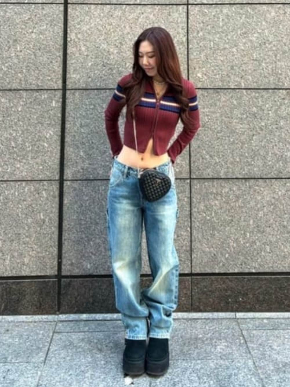 店頭で人気のハートバッグ一つ合わせるだけで女の子っぽくキルティングで高見え! レディースのパンツはサイズをあえて大きくすることでローライズに着れますよ!