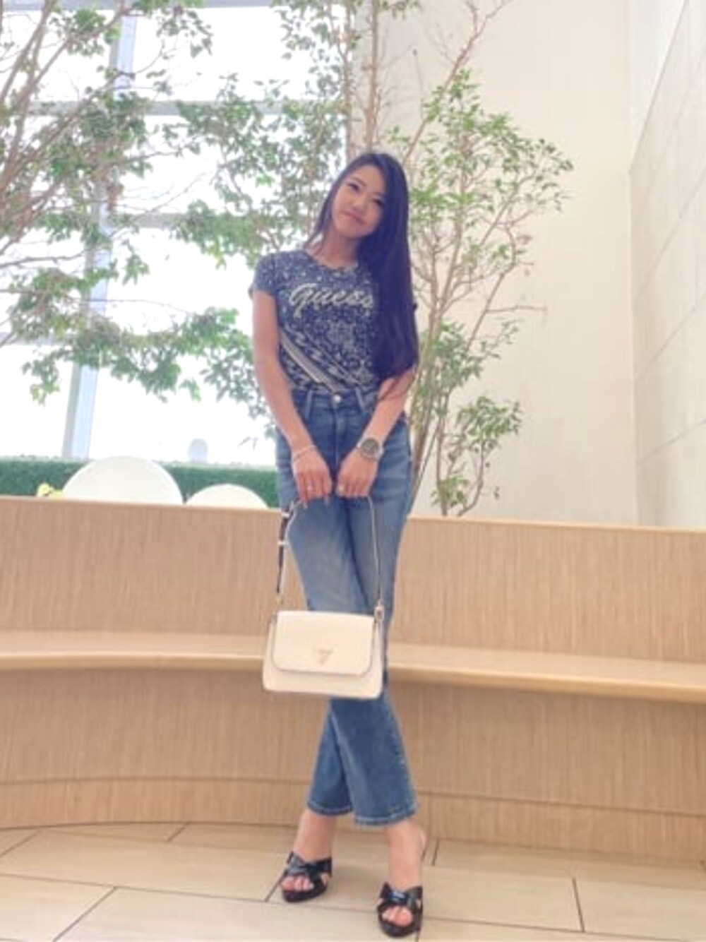 シンプルなデニムコーデ♡♡ ブーツカットのデニムはレングスも長すぎずスニーカーにもぴったり!!! ストレッチが効いているので動きやすさも◎ Topsはトレンドのキラキラのストーンがかわいい♡♡♡ こちらもストレッチが効いているので着心地も◎ 1点1点柄が違うのでまったく同じ物がないところもポイント!!! 着用サイズ Tops XS size Denim 25 inch