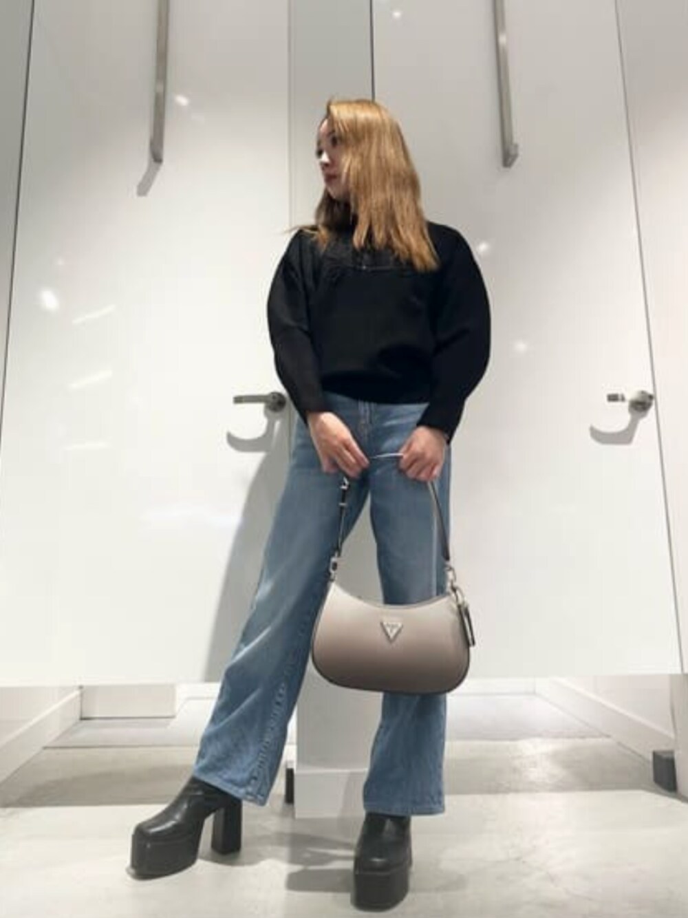 GUESS JAPAN(GUESS JAPAN)のデニムパンツ「Ankle Wide Leg Jeans デニムパンツ ジーンズ レディース」を使ったコーディネート