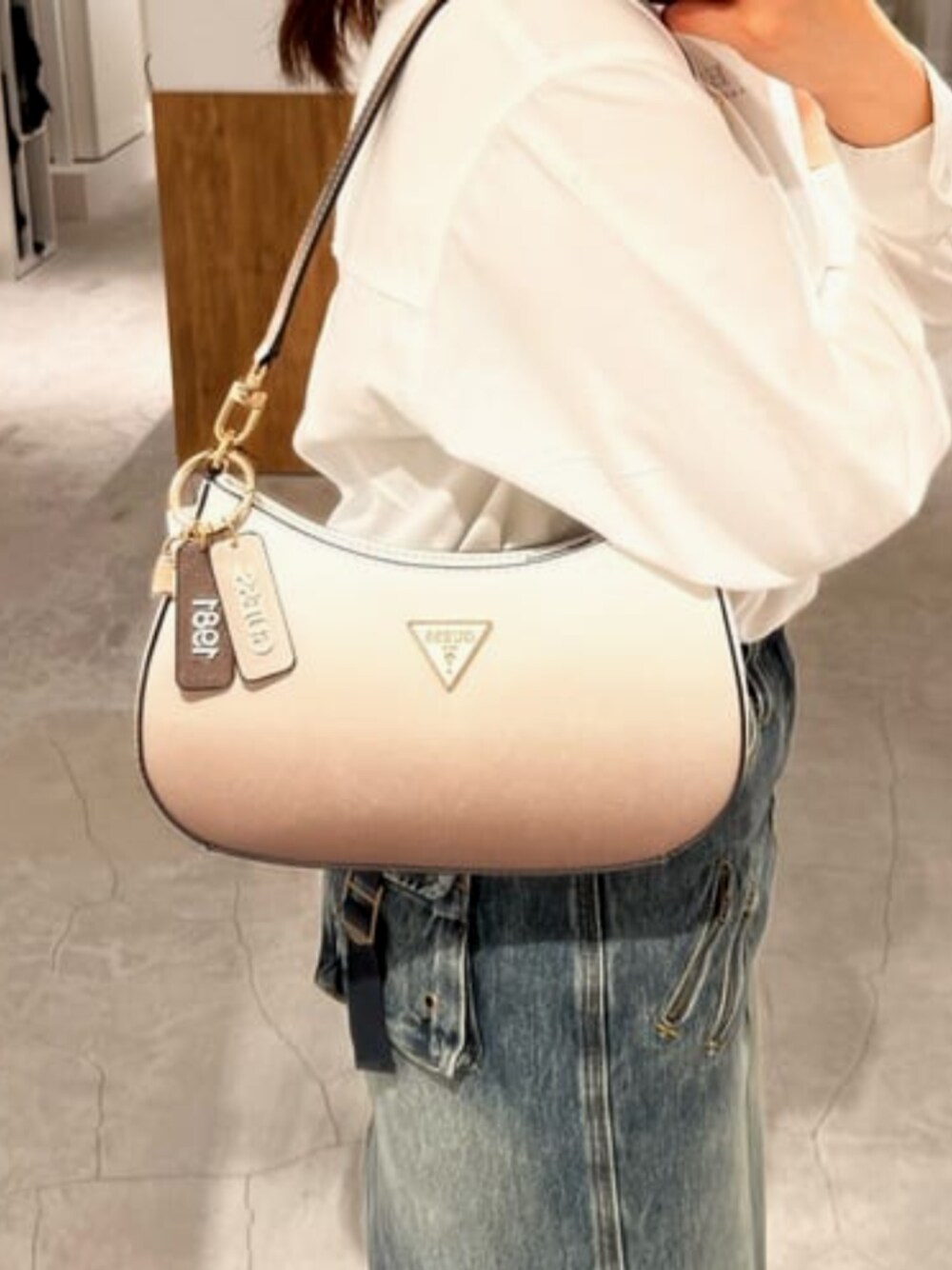 GUESS JAPAN(GUESS JAPAN)のハンドバッグ「NOELLE Top Zip Shoulder Bag ハンドバッグ ショルダーバッグ レディース」を使ったコーディネート