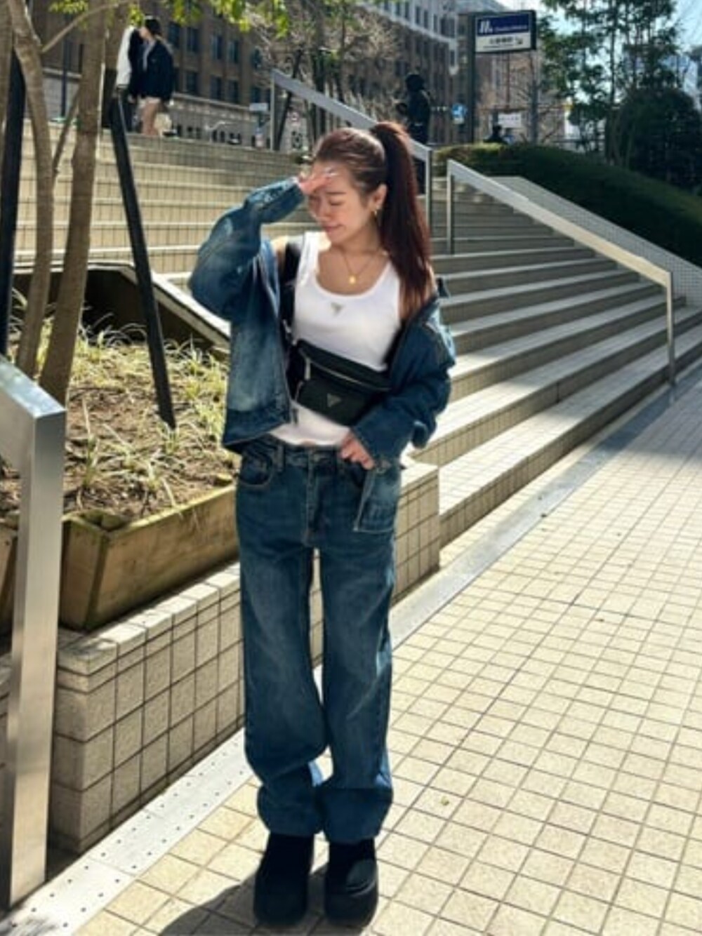 ヴィンテージカラーが可愛いデニムのセットアップはバックプリントとの色の組み合わせがドンピシャ可愛い🩷