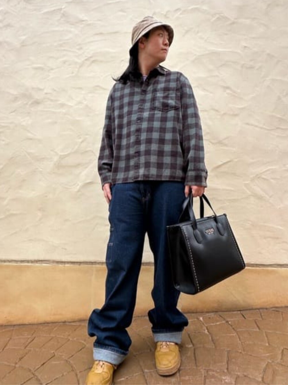 ネルシャツを使った春コーデ🌸 全体的に落ち着いた雰囲気になるよう 意識しました! カーペンターパンツは太めのシルエットで オールシーズン行けるアイテムです‼️ ハンドバックはpuレザーで出来ている為 シルエットが綺麗で大人な雰囲気のある バックとなってます